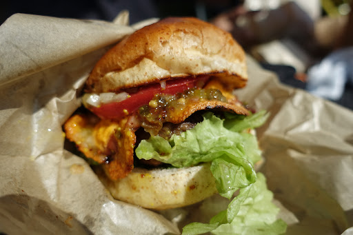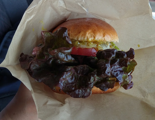 Read moreベロニカバーガーを注文。少し値上がりしていました(写真参照)。 注文から提供に15分以上かかります。土日は混み合っているので、もっと時間がかかるかもしれません。電話予約が可能とのことなので、余裕があれば電話しておきましょう。 バーガーには、野菜は冷たく、肉は熱い状態でサンドされています。注文の際には、マヨネーズ抜きなども対応してくれます。 ベロニカバーガーには刺激の強い味のものは挟まれておらず、食べやすく大変美味です。自分はトマトは苦手ですが、問題なく食べれました。 パラソルとテーブルが2つほど駐車場そばにあるのでそこで食べるのも乙でしょう。大きく見えますがあっさり食べ終えることができます。 次はチキンバーガ...