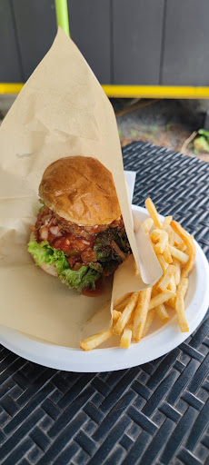 Read more以前から行きたかった熊本のベロニカさん。 山の中のコンテナハウスのような建物で営業されています。 飲食は外にあるベンチとテーブルで。 夏は暑すぎるだろうから涼しくなった10月末頃に来てみました。 チーズペーコンバーガーをオーダーしてみました。 土曜日のお昼時ということで25分ぐらいお待ちくださいと案内があり、25分ぐらいで提供されました👏 店内飲食ではないのでお持ち帰りスタイルで、紙袋に入って提供されます。 ハンバーガーがバーガー袋に入ってセロテープで止められているので出来立て感が感じられないのが残念なところ。 しかし味はかなりレベルが高いです。 バンスはハードタイプで香りが良くてめっちゃ好きなタイプ。 ベーコンは薄くて味がソースやパティに負けてしまい存在感が小さすぎたのが残念なところ。 パティはハンバーグが挟んであるタイプですが、結構好きな味。 全体の味はまとまっていていい...