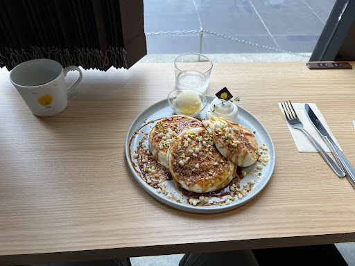Read moreI ordered the salmon and spinach spaghetti along with the caramel pancake. The food was delicious. The pasta was so good i finished it without taking a picture but the pancake was even better. Service was quick easy and simple. Cool vibes. They have sets for lunch...