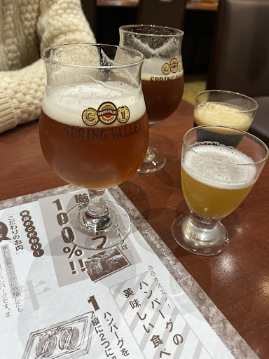 Read more買い物中ちょっと一杯飲みたいなとお店を探していたところ、クラフトビール🍺の文字が目に止まり!食事を既に済ませてしまっていて、飲むだけは申し訳ないなとも思いつつ、 ホールのお兄さんにドリンクだけでも大丈夫ですか?と伺ったところ、もちろん大丈夫ですよ!と笑顔で快く迎えて下さいました。 その後、申し訳ないなと思っていた気持ちを察してくれたのか、笑顔で丁寧に本日のクラフトビールの説明をして下さりました。 主人と2人で本日のクラフトビールをそれぞれ気になったものを注文。 すぐに持ってきて下さり乾杯🍻 美味しい〜🍺🍺🍺❤️ その後またそのお兄さんが良かったら次注文する時の参考にされてくださいと悩んでいた違うビールを一口サイズのテイスティングをサービスでと持ってきて下さいました! 私達は常連でもなく県外から初めて伺い、ふらっと入ったお店ですが、本当に丁寧で笑顔で気持ちの良い接客でお兄さんのお陰で居心地良く休日のひとときを過ごすことができました。 県外に住んでいてセンターリバーさんのハンバーグが美味しいと家族から勧められて食べてから大好きで良く冷凍ハンバーグを購入していたのですが、お店に行くのは初めてでしたが、 ハンバーグももちろんファンですが、 ホールのお兄さんの接客が素晴らしすぎて更にファンになりました!!! 私も主人も接客業をしているのですが、 あのお兄さんの接客が素晴らしすぎて‼️ 主人と2人で、あのお兄さん神接客すぎて引き抜きたい‼️というくらい😂 帰り際に、 すみませんお水も遅くなりましたが良かったら飲んで下さいとビールを飲み終わるジャストタイミングで持ってきて下さりました。 次、熊本駅に行く際はお腹を空かせてこのお店のセンターリバーさんに次は美味しいハンバーグを是非食べに伺いたいと思います‼️ もちろんクラフトビール🍺も‼️ 普段口コミは殆ど書かないんですが書きたくなるくらい本当に素晴らしい方でした! 神接客のホールのお兄さんの名前を伺うのを失念してしまいましたが本当に今日は居心地の良い時間をありがとうございました!! ...