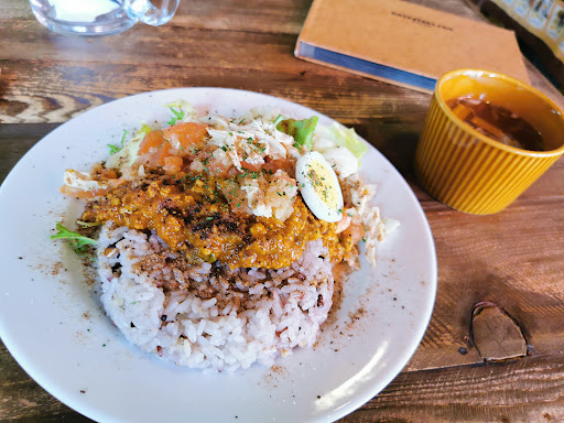 Read moreランチで1人で伺いました。 店内は少し暗めですが、本などがたくさん 置いてあり、雰囲気があるお店ですね。 スパイスキーマ?を頼み、 サラダ、スープ、ドリンク付でした😋 辛さ自体は辛い🌶!って感じではなく スパイス特有の少しピリっとするぐらいで 辛さが得意な私は全然余裕(?)ぐらいの 辛さです笑 味自体は万人受けするような感じでは ないですが、個人的にスパイスが とても風味良く、添えてあるトマトと 相性がとてもよかったです。 さっぱりした感じで ボリュームも程よいです。 ただ、男性の方には少し少ないかな? ドリンクはブレンドコーヒーを頼みましたが、これがとっても美味しかった! 私は食後に頼みましたが、 カレーと相性がよさそうな感じだったので 一緒に出してもらってもいいかなと 思いました✨ 苦味がそんなにないので、 コーヒーが苦手な方でも飲みやすいと 思います。 きまぐれランチも気になったので、 近くに寄った際に...