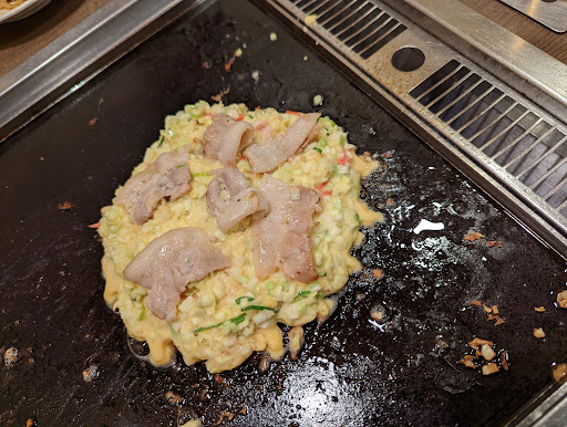鹿å å³¶ã«ãããã奜ã¿çŒæ¬è 鹿å å³¶å®å®¿åºããšããåºèã§ãã奜ã¿çŒãé£ã¹æŸé¡ãå©çšããããã奜ã¿çŒãæ¬èã§æäŸãããã¡ãã¥ãŒã¯åœããªãå°ããã§ãäžã«èŒããå ·ãã奜ã¿çŒãã®ãµã€ãºã«å¯ŸããŠé©æ£ã§ãã£ãã ãã奜ã¿çŒ éãšãå å¥è»åºãã¯ãã奜ã¿çŒæ¬è 鹿å å³¶å®å®¿åºããšæ¯ã¹ããšããã©ãŒãã³ã¹ã¯äœãã