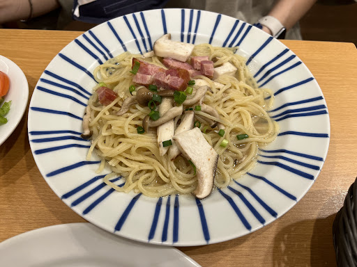 Mediocre pasta and bread—lots of pasta to choose from and for another ¥300 all-you-can-eat bread that is served (mostly) hot from the oven, brought out right to your table. The bread stopped coming out after the staff decided we had had enough, so we had to ask a couple more times to be served. There are better restaurants here; pass them by if you appreciate good food.