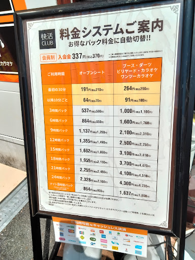 2024(令和6)年12月追記: リンスインシャンプーとボディソープは無料のままですが、シャワールーム自体が有料(30分330円)になっていました。受付カウンターに申し出なければいけないようです。タオルは有料のまま変更なしです。 一部のブース(カラオケ・ビリヤード・ダーツ)が料金が違います。