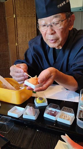 I also did the wagashi class and it was amazing! A master craftsman with 50 years experience teaches you how to make two wagashi based on seasonal shapes. Takes about an hour and you get to have some there and take what you made home. Super great experience, would recommend (they can also translate to English...