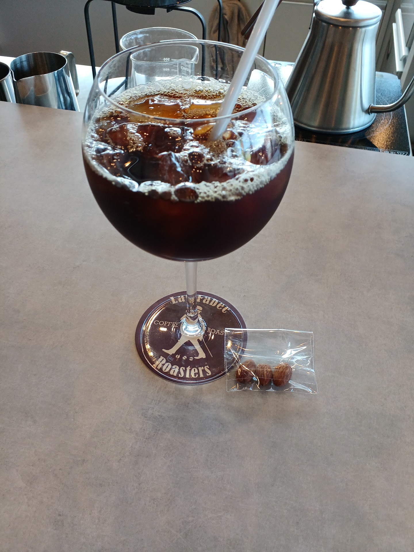 Read more私好みの酸味がある豆を友人からいただき美味しかったので、自分で買いに行きました。パッションフルーツが鼻から抜けるコーヒーと、酸味のあるものでとリクエストして、2種、美味しくいただきました。豆を2種購入、メニューにはエチオピア、モカと書いてあった気がしますが酸味があまり‥感じない。美味しい豆ですが。深煎りだと思います。そして、豆がテカテカしていて初めてです。 店内の説明では女性のスタッフは出しているコーヒーは深煎りとの説明があり、豆を選ぶ時に説明してくれた男性スタッフは全て浅煎りですと言われました。以前いただいた豆はテカテカしてなかった。もしかして酸化なのかと不安になりました。浅煎りの豆はテカテカしないと思います。その場で煎って貰えばよかったと後悔しています。今、コ...