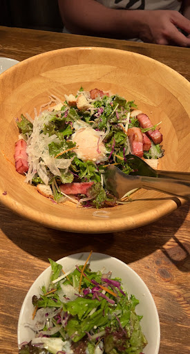 Although not the worst meal I've had in Japan, it wasn't great. House red wine was boxed and, besides not tasting great, also tasted off... Boxed wine has a good shelf life, but it still has a shelf life. When questioned about the wine it was shrugged off and concerns ignored... The staff were caught giggling and looking at us. Could've been a coincidence, not sure. Either way, not great and not the hospitality you would expect in Japan. We had the meat platter which consisted of a few cuts that were clearly reheated and added to the platter and a few items that were cooked fresh. Not terrible, not amazing. Some of the meat was good, some was quite fatty. The sausages were so-so (I've been spoilt by amazing sausages from the UK so I'm a tough critic when it comes to sausages... But I've had better in Japan). Platter had a small amount of wedges on it and some veggies but that's forgivable as this was a meat platter after all. Wedges (in the menu, not on the platter) are advertised as having anchovy salt on them so we avoided them in favour of 'spicy' fries... They weren't spicy and seemed to have the very anchovy seasoning on them... the thing we'd actually just tried to avoid. The salad was ok (it was a green salad so could hardly go wrong) and the dressing with it was on the side so you could choose how much you wanted - this was good and a nice touch. Waiter (except for giggling about the wine) was actually very polite...
