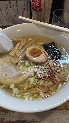 Salt-broth ramen flavored with local chicken & a choice of handmade noodles, in a tiny space.