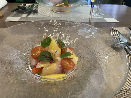 Read more昨年(2023年末)オープンされたフレンチレストランさんです。 お店の対面、アタックスさんに駐車出来ます。 オーナーシェフさんはホテルキャッスル出身、王道のフレンチをリーズナブルに提供なさっています。 ランチは¥2,000、¥3,000の2コース(メインを肉、もしくは魚から選ぶorどちらも)。 ディナーは¥5,000のコースのみです。 基本ディナーは予約のみ承っておられるようですが(一斉スタートではない)最近はランチも予約しないと難しくなってきておられます。 とにかく料理は王道、ソースに強いこだわりを持っておられてフレンチのコースとしては著しくコストパフォーマンスが高いです。 美味しいのは勿論、仕事が丁寧、かつ一つ一つのお皿にしつらえられたお料理が綺麗。 記念日やお祝いごとにも非常に使い...