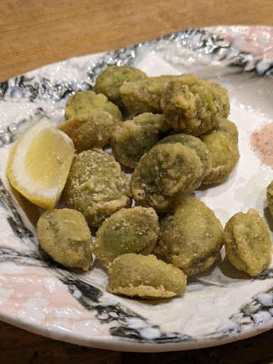 Read more二度目は友人と夜の食事で利用しました。 人気店のため、早めの予約が必要です。 その日は残念ながら穴子はありませんでしたが、イカの刺身を頂き、最後は天ぷらにしてもらいました。(美味しかったです🤤) せいろ蒸しの豚巻野菜串がとても見栄えもよく、美味しくいただきました。(写真載せてます) 日本酒は 一度飲んでみたかった雪漫々がおいてありました👀 曲もなく飲みやすいお酒でした🤔。