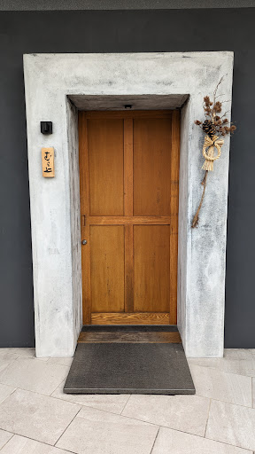 外観はビルの2Fに入っており黒の壁に白塗りで囲われた木の扉が特徴的。