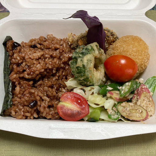 Read more今日のお昼は、泉ヶ丘小学校近くにオープンしたorganic kitchen SANKAKUのテイクアウトorganic box ¥864 酵素玄米ご飯と野菜のおかず。 酵素玄米ご飯は赤飯のようにモチモチして美味しいものだね。自ずと咀嚼回数も多くなるから満腹中枢が刺激されて見かけよりお腹いっぱいになる。 おかずは、ゴーヤの天ぷら、コロッケ、カボチャフライ、サラダ、水前寺菜、ミニトマト。 コロッケとフライの衣は米粉のパン粉を使っているのだろうか、カリカリした食感が良い。サラダはクミンシード入り。 容器は環境に配慮して非木材パルプ使用、リサイクル♻️可能な紙製。素晴らしいSDGSのコンセプトだが、容器の横についたご飯に紙の繊維が剥がれてくっついてしまうのが難点。 今日はたまたま子供たちのイベントが開催されていて、玄関前に露店のテントが出ていた。 ご馳走さまでした。 #熊本ランチ #熊本テイクアウト #熊本グルメ...