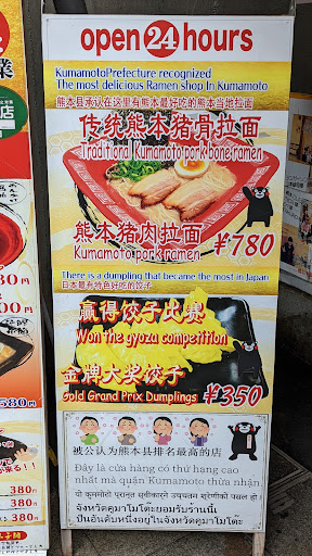 Wow, I'm surprised that it's rated lower than 4.5 stars. The ramen here was the best you could get in Kumamoto. They served many famous people as well. If you pass the road, they had a Kumamon figure with recorded advertisement on 24/7 and YES THEY ARE VERY CHEAP. The cheapest ramen I've ever tasted (I was a ramen hunter) with the best taste as well! Their cheapest menu was 360 yen and the best thing was that you can get a noodle refill for half the bowl's price. Loved that. Any better? Absolutely! Should you stay long in Kumamoto, they'd give you (or cou could try asking for) a discount card to stamp upon. I got many during my 11 months exchange period, and that's especially because I always go there together with my boyfriend and usually other people. Got stamped to the full with every people who came, and the owner (?) was kind to let me use the discount card over and over until the last time I ate there before my stay'd be up, the new guy took the card away from me (it seemed like the proper way to do it; submit the card to use/redeem and fill a new one), that's how I know that the usual guy was benevolent to me and my group. The discount card had a half price noodles at 10 stamps (easy to achieve should you eat in a group), cheap additional gyoza at 5, and I don't know if there's any new version of it. But anyway, SUPER RECOMMENDED! Frequented this ramen shop for...