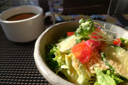 ãã³ããŒã°ãçŽ æã®å³ãçãããããŠããªãã è¯ãèã䜿ã£ãŠããã®ã¯åãããããœãŒã¹ãšã®ãã©ã³ã¹ãæªãã®ã ã ããããµã©ãã®ãã¬ãã·ã³ã°ã¯çãã§ãèªåã«ãšã£ãŠã¯èŠæãªå³ã ã£ãã ãã¶ãŒãã¯èå³ã§äžåãšããã°èããã¯ããããäœãç©è¶³ããªããæããã