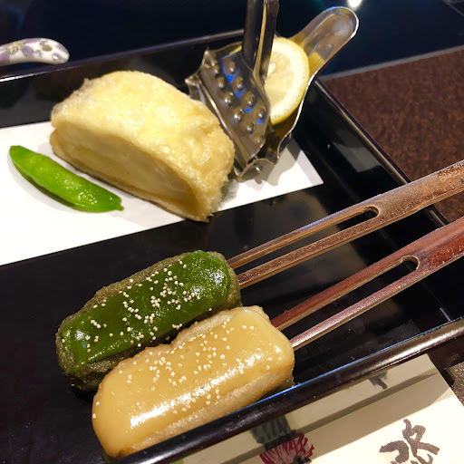 I didn't expect such a fine restaurant, that i felt quite underdressed with my summerly shorts. The ambiente is really nice. You have to take off your shoes there, so you probably want to dress apparently. I would strongly recommend to have at least socks and long pants, if you dont wanna feel out of place. Its very well air-conditioned so you dont need to worry about sweating over the whole place. It is really calme/quite place. My cousin said they specialize in Tofu. They serve it in various recipes, forms and also tastes. At least our food was almost all about Tofu. We took the Ume lunch. Its a 4 course menu for about 2000yen, which is probably the cheapest on the menu. Each course is very eye pleasing and tasted very good. I only had a brief look into the menu and as i recall it the top price for one dish was like 8000yen. Considering the prices in europe its quite cheap in all. If you want to eat/try more i think you should be fine with cap of 100€/100US$ for 2Persons. I would recommend it for a date, or you wanna surprise/impress your partner ;). She will definitely like it. Altough they specialize also in Tofu, they are a kaiseki ryori restaurant, which means they are definitely not vegan. In chawanmushi is a shrimp. The taste of one tofu was fishlike, because they probably brewed the tofu in fish broth. I think its possible to go vegan, but since the concept of "vegan" is not very broad known in japan in general, you should ask carefully of each dish.