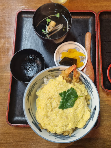 전체적인 메뉴가 엄 천국의 덮밥? 밥 계란 새우튀김 올라간 덮밥인데, 밥은 찰기 좋게 맛있었어요. 계란이 진짜 입니다. 부드럽게 퐁실퐁실 올라가서 밥이랑 같이 먹으면 천국가는 맛. 새우는 오동통하니 살이 실해서 먹는 맛이 있았어요.