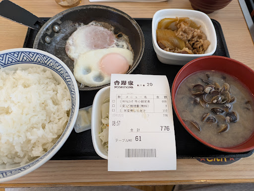 Read more朝8時30分頃来店 店員さんがかなりバタついており テーブルも片付いてない状況。 空席があったので座り Wハムエッグ牛小鉢定食を注文。 提供は20分程。 正直遅いなとは思ったが 忙しそうな状況だったのでそこに関しては 致し方ないと思っていたら 写真の定食がきた。 明らかに卵1つとハムも1枚。 女性の店員さん(40代くらい)に 「Wハムエッグ頼んだんですけど これ1個だけですよね?」と丁寧な口調で 言ったが明らかな嫌顔をされ 他にも注文待ってる人もいたし 作り直しも時間かかるだろうから 「全然これで大丈夫です。」と伝えたが 会計は正規の値段取られた。 自分がこれで大丈夫です。とは言ったが 会計の際も謝罪なし その店員さんは他のスタッフさんにも 言い方とかキツイ感じで 正直朝から...