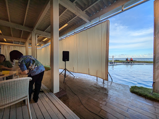 Read moreガーデンバーベキューでの事です。 当日はスコールが5時頃までに何回か訪れバーベキュー会場は雨除けシートで覆われておりましたが開店前には完全に晴れ渡りました。 会場に入るとめちゃくちゃ暑く、景色も見えないことより開けるよう要求しましたが、いつスコールが来るかわからないので開けられないと。それならばスコールの時点でまた閉めればよいのではないか。 しかし混み合う会場はバーベキューコンロの熱と風通しの悪さから熱中症になりそうな雰囲気。 天気レーダーでもスコールは今後考えにくいと画面を見せると「風が強いから」と、変な言い訳。 離島はこのくらいの風はいつものこと。 他の利用者も店員に訴えていますが、今度は人がいないから待ってと。コロコロ言い訳が変わる。 何人かは焼いた肉をカーテンの外に持ち出し食べてるほど。 ここの責任者は1番にや...