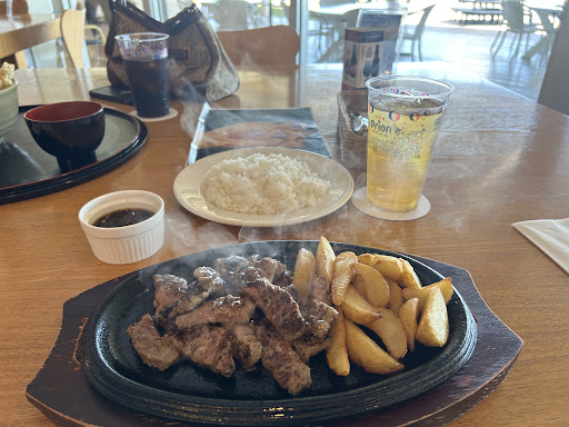 Great atmosphere and convent if you are staying at the resort. The breakfast options would accommodate almost every taste with a lot of different things to choose from. The lunch and dinner options are limited. We tried the steak and tempura prawns for lunch we tasted okay. For dinner we tried their yakiniku style BBQ. Our reservation was for 730 pm, we had eaten the small portions we were given by 800 pm. When the staff came to our table after 800 pm, we were told it would cost extra for more food. I am not sure if it was because of the time, however, we paid 6,600 yen for the food and felt like we were ripped off given how little food...