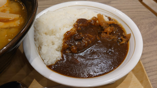 食事は上り線限定の辛味噌牛たんラーメン+ミニカレーを頂きましたが、スープが薄味すぎてイマイチでした。牛たんとも合わないしバランスが悪い印象です。これで1200円。 喜多方ラーメンを食べた家族も味が薄くて美味しくないと言っていたので我が家には合わない味でした。
