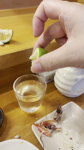 店内、お客がいる気配は無かったが、 フライト1時間半前頃、迷い無く入店です。 席は迷い無くカウンター、大将の眼前。