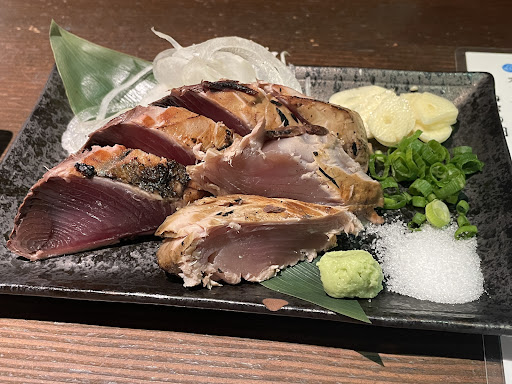 Read more藁焼き(鰹、鰆、紋甲イカ)、鱚の天ぷら、おまかせ焼き鳥5串、豚ロースの藁焼きをいただきました。藁焼き最高です。カウンター席の一番奥だと藁焼きしているところがよく見えて食欲をそそります。