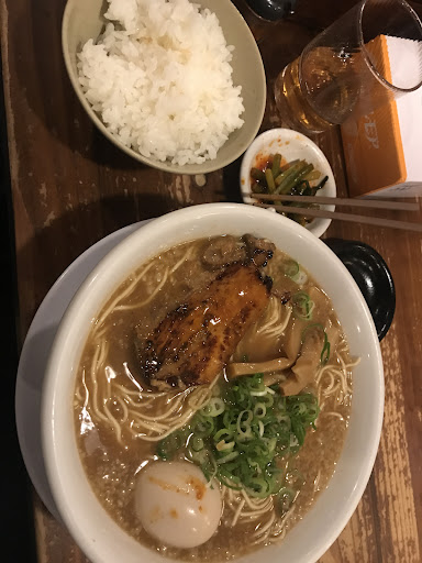 Read more日曜のお昼すぎ14時前頃に醤油豚骨の看板にひかれて、初めていきました✨ たくさんのお客様がおられましたが、待ち時間なくすぐに入れました。 タブレットで注文するシステムで、 近くにきたスタッフさんが「今こちらが人気です」と葱濃くラーメンを教えて下さり、私はその葱濃くラーメンとライス餃子セットを。 友達はばり濃くラーメンとライス唐揚げセットを。 待っている間、テーブルの上にあった、にんにくの芽を頂いてみると、とても美味しくとまらない(笑) ラーメン店の提供してくれる順番って、客からすると結構重要ですが、ラーメンより先にセットのライス、餃子、唐揚げが先にきて、メインのラーメンを待つだけというのは、とても嬉しかったです✨