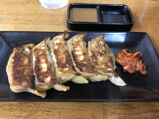 Read moreパチンコ屋の敷地内にあるラーメン屋さんなので駐車場は多いです。パチンコ屋さんのお客さんというより、作業服来た団体が多いです。 ラーメンは醤油とんこつ。背脂乗ってるわりにサッパリです。 スープは美味しいのですが、中太の縮れ麺が合ってなくて残念です。細いストレート麺にした方が合いそうだなという気がしました。 餃子はタレが一緒に出てくるタイプ。醤油とゴマ味噌ダレかな?ゴマ味噌、餃子につけて初めて食べましたが、意外と美味しかったです。あと餃子にキムチがついてくるのは初めてでした。 水のピッチャーに...