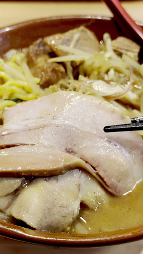 翌週、 開店から10分後くらいに来店しましたが、既に3組ほど並んでいました。 駐車場がいっぱいでしたので記帳してから駐車場を待ちました。 上白味噌ラーメンとライスを注文 価格は1,130円 注文してから5分程で提供されました。 食べ始めは前回の濃厚さを期待していたせいか、かなりあっさりした印象。 具の素材の味を楽しむのには良いかもしれませんが自分には少し物足りない。 食べ進めて味噌専用スパイスを入れた当たりから甘みのある濃厚さが出てきました。 もしかしたら、濃厚スープが下の方に沈んでいたのかもしれません。 ただ具沢山のラーメンなので最初に混ぜるという考えには及びませんでした。 初めて来店される方、濃厚好きな方には、赤味噌...