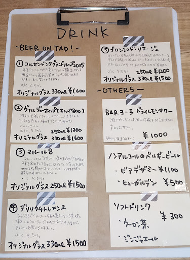 Opened in August of this year by a Belgian beer enthusiast, this bar offers Belgian beers on tap (5 different beers) as well as bottled beers (33 cl, 75 cl). On tap, there's always a Corsendonck beer, a Val Dieu beer, and a Malheur beer, and the type of each changes regularly (blonde, brown, triple, grand cru, fruitée, Noël, russet, grand hops, etc.). Other beers on tap include Lupulus, Blanche de Liège, Gulden Draak, Delirium Tremens, and more. Other alcoholic beverages are available, as well as non-alcoholic Belgian beer. Snacks are available to accompany the drinks, and I recommend the French fries, which also come from Belgium. Being located a 2-minute walk from Shin-Kurashiki Station (shinkansen and local train), the bar is easily accessible. I highly recommend this bar to discover and enjoy the delicious and unrivaled Belgian beers that you probably won't find in...