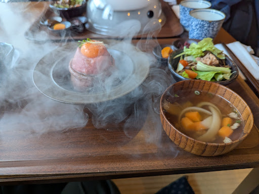 Slow cooked roast style beef is a nice way to try Japanese beef in a different way (compared to bbq) and all those side dishes are tasty. Made from a local cattle variety unique to the region. Add to the list if you are trying different style of Wagyu on your food journey. (Like the two Japanese high school students on excursion who looked so genuinely happy and excited when their meal came out) Friendly staff, Japanese and English. Small and intimate tatami eating space on low tables and...