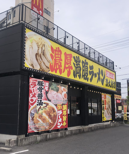 Read moreこれは美味い! 満腹G系ラーメン:家系でも二郎系でもない新しいジャンルの味と言えそうだ。 味は濃くてしっかり主張してくるのに、全体が絶妙に調和してまろやかなスープ。変な胃もたれ感とかは全くなく、むしろ繊細ささえ感じられ、いくらでも飲める感じ。 麺はスープにマッチした極太麺。茹で加減も丁度良い。 無料サービスのご飯もラーメンと一緒に食べることを計算してちょっと硬めに炊いてあり、ジャーを開けた途端にフッといい香りが漂う。口にほおばってスープを流し込んでも美味く、麺を食べた後のスープにダイブさせても美味い。 味付けされていない生のもやしもスープでちょうど良い味になり、焼豚(角煮?)も抜群の美味。 味付けニンニク味噌も絶妙の味わいで、テーブルの上にあった豆板醤も途中で少し加えたりしつつ、終始「美味い」「美味い」を連発しながら完食した。 この味に辿り着くまでに大変な研究が重ねられてきたと思うが、この味とボリュームでご飯食べ放題までついて千円でお釣りが来...