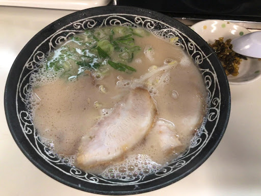 Read more博多の長浜系の豚骨ラーメンのお店ですね。 なかなかの人気店らしくオープンしてすぐに満員となり、すでに何組か店内で待っていました。 注文してからも配膳されるまで結構時間が掛かりましたね。 麺はストレート麺、チャーシューは脂身が割と多め、水っぽくなるのでモヤシは邪魔でしたね。 スープもオーソドックスな豚骨スープでクリーミーで、臭みは特に感じませんでした。 お味はまぁあぁですが、ラーメンが640円と若干高く感じました。 替玉は140円とこちらも少し高めです。 店の前と横に駐車場があるのですが、狭く数も限られるため、すぐに満車になるので注意が必要です。