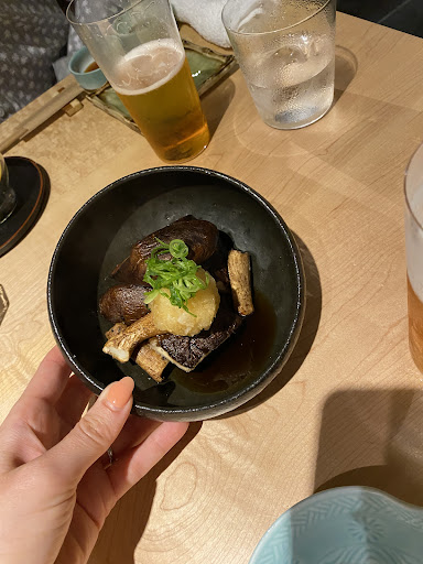 This restaurant requires that you order a drink (most are at least 400 yen) and has a 400 yen table change, if you're thinking of just having a quick snack late-night things will be more pricey than you might initially expect. (I paid 2410, ordering about 1500 worth of food). They did include a free little appetizer as well.