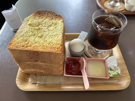 SNSで気になってたお店のモーニングに行ってきました😆 レトロ感満載の店内、中は結構広く、座席数もあり、とても落ち着いた雰囲気🎵 コレは朝からセレブちっくな気分でモーニングいただけそうだと既に心地よい⭕️ 注文する時のベル、懐かしい👀 全部の座席に同じベル・・どーやって席見分けてるんだ?とふと疑問に思うw 注文したのは『ドリンクモーニング』大人らしくアイスコーヒーにしてみたw しばらく待ってると『お待たせしました🎵』 出てきたビジュアルにビックリ‼︎ 写真で見てたよりも、生で見ると迫力が😂 トッピングにジャムと練乳🎵 まずは、そのままパクリ・・・パン美味しい😆💕 めっちゃフカフカ❤️ バター塗ってくれてるから、このままでも充分美味しかったけど、ジャムが👍 果肉残ってるカンジがまた良くてサイコー🎵 ソレに練乳って合うんやなー🎵 2/3はイキオイでペロリ😋 さすがに量が・・😅 時間はかかったけど、最後まで全部いただきました😆 お腹は大満足のモーニング❤️ 他のメニューも食べたいから...