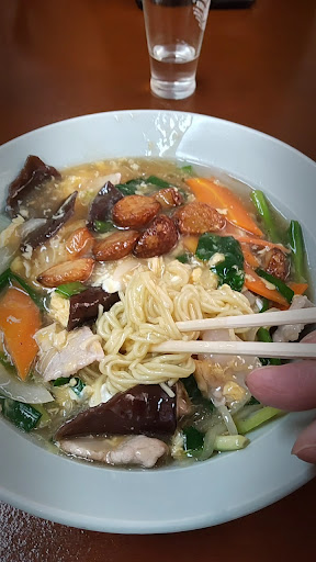 Read more倉敷にあるこちらのお店に伺いました 趣のある商店街の一角がこちらの店舗です さっそく入店して ワンタン麺、五目焼飯を注文 15時頃でしたがお客さん1組いらっしゃいました ビール🍺を呑んで楽しまれています 程なく注文した品が到着 それではいただきます😋 焼飯には珍しくピーマンが入っています 他にも豚肉、玉ねぎ、にんじん、エビが入っておりとても豪華です 色は濃く見えますが食べると意外にしつこくなくサラッといただけます ワンタン麺はツルッとしたワンタンともやし、チャーシュー、ネギと至ってシンプルです 麺は細めのストレート 少し柔らかいかなって感じです スープはたぶん鶏ガラベースだと思われます こちらもサッパリとした味わいでいただけます チャーシューは厚切りで脂身が少ない 肉肉しく食べ応えありますよ 完飲完食して ごちそうさまでした😋 とても食べやすいまさに中華そばといった感じでした 昨今のコッテリしたラーメンが好みの方には少し物足りなく感じられるかもしれません 時には懐かしさを求めてこちらも一考頂ければと思います お店までの道なりが狭いのでお越...
