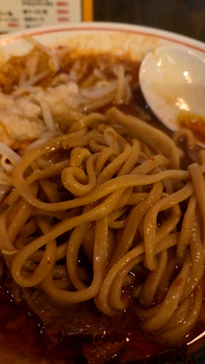 スープが辛味噌系のドロドロした辛さでうまい。 マーボー的なシビからの辛さでこれはこれで、なかなかいけると思います。 なかなか濃厚なので、スープの濃さと油をちょい増しにしましたが、普通でも良いと思いました。 辛さはピリ辛程度で、じんわり汗をかく程度、普通でちょうど良かったです。