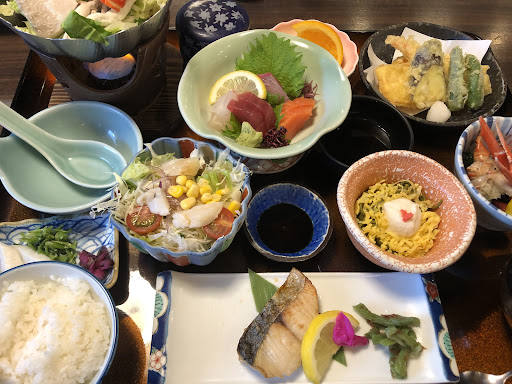 ランチメニューは1000円と1500円があり、寿司が食べたかったので1500円のを注文。 刺身も新鮮で美味しかった。写真撮る前に我慢できず、サーモン食べてしまった(笑) お味噌汁もホッとするお味。天ぷらも美味しかったけど、蓮根だけが油っぽかった。 バターの蒸し焼き?みたいなのがあったんだけど、少し薄味だったので醤油を少し掛けて、バター醤油にして食べたら美味しかった。 とりあえずボリュームが半端なく多かった。大食いの私でもお腹いっぱいになったくらい。1500円で満足な料理でした。 また機...