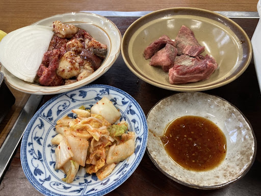 Read more昭和の雰囲気漂うお店。大衆焼肉屋!店内に冷暖房設備はなし。扇風機のみ。店内は6テーブルの小さな店舗だが非常にキレイなテーブルや床の状態です。駐車場は店舗前と理容室との共有であります。 メニューはあるが金額の記載なし。 タレは醤油ベースの甘めなタレ。庭瀬の焼肉にしきのタレと類似してます。 店内喫煙可能。 皿に数種類の肉を混ぜて提供されるので最初これは何?ってびっくりした。 個別の価格は分からなかったがたぶん一人前1000円くらい。ご飯が200円だと思いま...