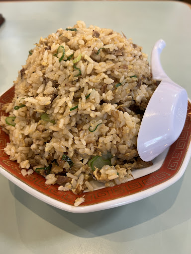 炒飯は量が多いですね、大きくない皿にてんこ盛り、喜楽園さんの名物盛りです。しっとり仕上げで醤油系の味わいが強いです。チャーシュー片・卵・青ネギ...醤油ダレが卵の甘みを完全に打ち消す硬派の炒飯、シェアして頂きましたがラーメンと組み合わせると一人じゃ無理かな^^;