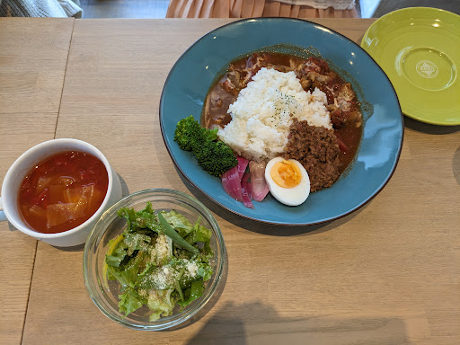 Read moreランチはせいろ蒸し(鳥肉または豚肉選択)、ハンバーグオムライス、スパイスカレーの中から選べました。私はピーチポークのランチにしましたが、お肉と一緒に蒸して出てくるお野菜がとてもたくさんあって驚きました。お肉やお野菜をいただくときに使用するたれやお塩等も少しずつ色んな種類の物が出てくるので、毎回味を変えていただくことができました。特にスパイスが入っているお塩が美味しかったです。ご飯は白米か五穀米か選べました。ランチにムレスナティー ティーフリー(600円)をつけると2時間、色々なフレーバーティーをお勧めしてくださいます。カップに毎回少しずつ入れてくださるので、2時間の間に13種類のフレーバーティーをいただくことができました。お茶は全部で40種類あるようなので、毎回違うものに出会えるかもしれません。お好みのものを一種類だけ注文することもできます。他にもたくさんドリンクの種類がありますし、無料のデトックスウォーターのような柑橘が入ったお水も置いてありました。お料理自体はさほどボリュームはありませんでしたが、お茶をたくさんいただいたので、物足りないという感じにはなりませんでした。ランチには紅茶のプリンも付いていました。お野菜がたくさん召し上がりたい方とフレーバーティーがお好きな方にはお勧めです。...
