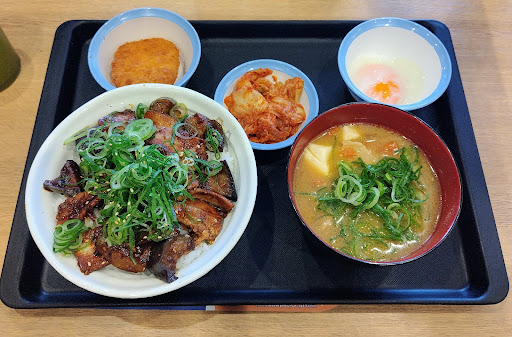 Read more店舗に行ってテイクアウトしました。平日の昼時、ドライブスルーにも何台か車が並び、駐車場も混雑していました。入ってすぐ、食券を買うシステムのようで、慣れていない方は最初はとまどうかも。 注文はボタンを押すだけなのですぐ出来ましたが、お金を現金で支払う方法がよくわからず、結局キャッシュレスでの、支払いならわかりやすいボタンがあったので、そちらで支払いをしました。 中に入ると、食券を渡すのかと思いきや、中でお待ちくださいと、言われて、椅子に腰掛けて待ちました。 中で食べる人の方が出来上がるのが早く、結局15分も待たされてやっと持って帰れました。牛丼屋の中では待ち時間が一番長い気がしました。 中の容器はご飯と牛丼が分かれて入っていて、とても美味しくいただきました。