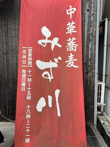 Read more人間ドックを数週間後に控えて居る中、またしても中華そばが食べたくなったので健康な証拠だと思い、倉敷方面で高評価の【中華そば みず川】さんに伺いました。駐車場は、店前に1台と徒歩12秒くらいなところに8台?くらいですかね?ありました。その他、川沿い?海沿い?に無限にあるんじゃないかと思います。知らんけど。 11時20分頃に到着しましたが、既に満席と10組位の待ちがあり、だっ💦大人気です。 雪がちらつき、外で待つのは非常に寒いのですが、冷やし中華じゃないので我慢できました。 待ちが、3組くらいになった頃でしょうか、愛想の良いお嬢さんが注文伺いに来てくれたので、麺1.5玉の大盛りと、2玉の特盛で悩んでいたのですが、(味玉そばの特盛)と、妻が(中華そば+とり天+ごはん)のA定食にしました。外で30分くらい待ってましたが、注文伺いに来てくれたので、着席後は比較的早く着丼です! お店の雰囲気も非常に良く、老舗ならーめん屋さんでなく、古民家風?倉庫?を改装した感じのお洒落な空間で女性にも人気なのだと感じました。 男性ですが何か? 玉島地区ってぶらりするには良いとこみたいです。