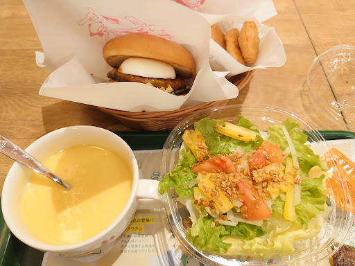 Read more期間限定とろったまチーズテリヤキバーガー(とろけ出す黄身と濃厚テリヤキソースが絡んで美味しい) コーンスープ(とにかく濃厚。コーンをとことん味わうスープ、寒い夜だったので一際美味い) こだわりサラダ(なかなかのボリューム。ドレッシングは減塩タイプの和風ドレッシングのみ。店内飲食だったから陶器の食器が良かったなと思ったけど、フォークがお皿に当たる時の嫌な感じがないからプラスチックのパックで良かった) チキンナゲット(5個入り、ソースは別売3種類、バーベキューソースで頂く。熱々やわらかくて美味しい) セルフレジにてモスカードのチャージ方法が分からず店員さんにやってもらう。親切。 木のナチュラルな感じの店内の雰囲気が良い、椅子も座り心地良い。 流れるBGMはジャズ?!キッチンから聞こえる揚げ物の音、どれも心地...