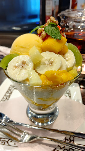 ホットのアールグレイと季節のデザートの中からパフェを選んで注文しました。 パフェにのっているフルーツは冷凍で芯がカチカチでした。冷凍のキウイ独特の透け感があり、見た目もがっかりです。バナナすら香りがしなかったので切ってしばらく置いていたものでしょう。 極寒の中、冷凍フルーツが溶けるのをアールグレイを飲みながら待ちました。アールグレイは、冷えないように下から固形燃料で温めるという演出がされていましたが、それ以前にティーバッグのためか、カップに注いでも香りがたちません。 来店が多いので、冷凍食品やティーバッグ等、調理の手間が省かれているのはわかりました。