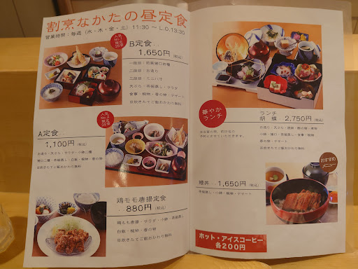 メニューはランチ専用のもののみしか頼めません。 一品料理は夜のみとのことです。 注文して10分程度で料理がきました。 Aランチは男には少しすくないかな?と思います。 それぞれが少し上品な感じにまとまっています。 天ぷらはサクサクです。 その他もいいですが、まだこういった味には慣れないのであまり美味しく思えませんでした。 もっと大人になれば美味しいと思うかな??