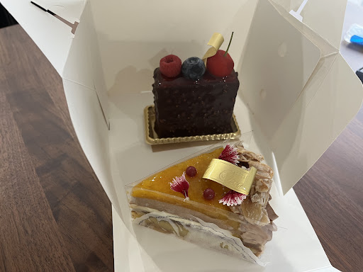 前に、何かでお店の事を知って ずっと行ってみたいと思っていました。 岡山市内の家からでは 1時間かかるので それだけのために行くのは‥と 延ばし延ばしになり 何年越し?かで やっと今日 行って来ました。 倉敷市内で 食事して行ったので 2時頃だったと思います。 駐車場は、余裕を持って 止める事が出来ました。 ケーキは、美しいデザインで フルーツなどもふんだんに使ってあって 一つに絞るのに 苦労しました。 夫が、自分は いいから 2個食べたら と 言ってくれたので 健康診断も終わったばかりなのでw 最終的に 絞りきれなかった 「パラディ」と「ジャルダン」を 購入しました。 パラディは、オレンジとアーモンドのケーキだったか? 詳細は、忘れてしまったのですが オレンジソースが たっぷり、アーモンドクリームと ホワイトクリームの層になったタルトでした。 岡山歴 11年の私にとって 岡山で 2番目に美味しい ケーキ屋さんだと思います。 1時間かけて 倉敷まで 買いに行っても良いかと。 店員さんの接客も、すごく感じが良かったです。 気持ち残念なのは 若干 甘さが強めに感じたことです。 喉に 甘さが 残るというか 刺さる感じがありました。 あくまで 個人的な 見解です。
