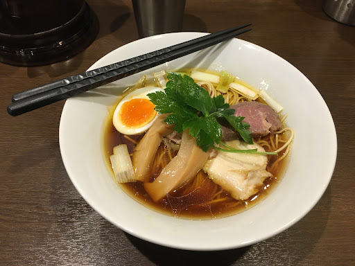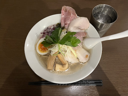 まずスープ。鶏ガラ&あさりの定番タッグに加わったしじみのコクがアクセントとなる。さらにホタテ油が香りを引き締め、立体的な構造の旨みとなっている。また、後述の調味料により味変を経つつ最後の一滴まで楽しめる。 次に麺。他のメニューで細麺が使用される一方、クラムは弾力ある太麺。噛むたびに小麦がすっと鼻に抜ける。 特筆すべきはバラエティに富む具材達である。脂身少なめのレアチャーとしっとりした鶏チャーの組み合わせが堪らない。他にも、硬いが味の染みたメンマ、スープを吸って完成する半熟の味玉、炙ることで辛み臭みが抜け甘さを発揮するシラガ、シャキシャキ食感の玉ねぎ、強いパンチにより中盤の淡白さを解消するガーリックペースト等々、エンターテイメントとも言うべきラインナップ。 やや値は張るが、具材の一つ一つに拘りを感じながらも調和のとれた、価格に遜色ない一杯。