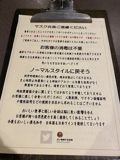 Read moreダメだこの店! マスク着用義務なし!店主筆頭に!このご時世にないわ! 知り合いに聞いてまさかと思ってきたら呆れた。 二度と利用しない。味以前の問題。消毒用アルコールも当然置いてない。 まともな経営判断出来ない店は潰れて仕方ないね。基本的な感染対策してないのは法令違反だけどどうなってるの? でも時短に従うって?意味がわからん。 未だにコロナはただの風邪派か?ただの風邪じゃないからこんなになってるのにアホかと。