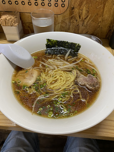 ラーメンはコク深い醤油味、麺も喉越しと噛み応えがあって最高 具は海苔・もやし・ねぎ・鶏チャーシュー 値段が安めで少し量が少なく感じるので、大人はラーメン大で丁度いいくらいと思います 個人的に倉敷・岡山で食べた醤油ラーメンの中で一番美味しく感じた